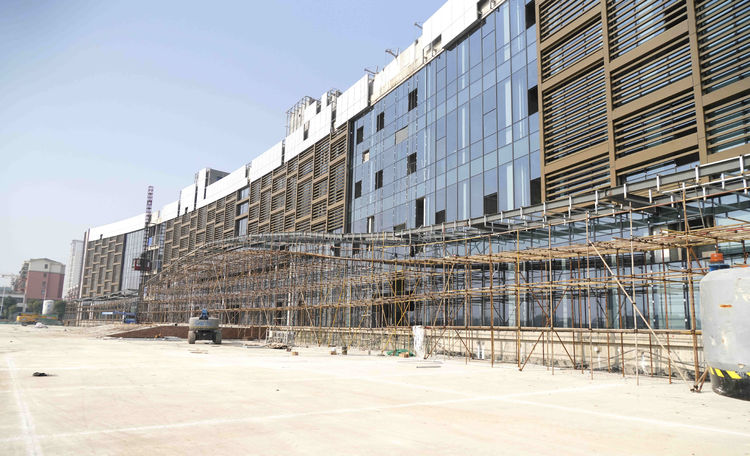 进贤县人民医院搬迁工程从2019年10月开工建设,至2021年3月主体工程全部完工。目前在装饰装修阶段的进度:外立面装饰铝合金、真石漆基本完成;铝单板幕墙完成约75%;1#门诊楼、2#医技楼机电管道安装完成约30%;电梯安装完成60%;门诊大厅形象墙完成70%;3#4#住院部内装修标准病房层墙地砖完成约70%、机电管道安装完成约70%;5#楼食堂机电管道安装完成约50%。