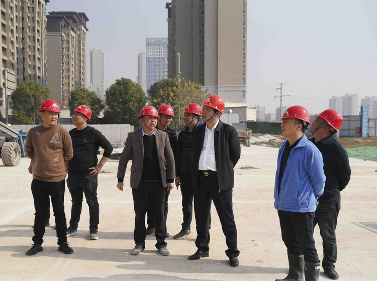 2021年12月11日樊总带队工程部在进贤人民医院搬迁工程项目部的陪同下,在工地现场指导工作。